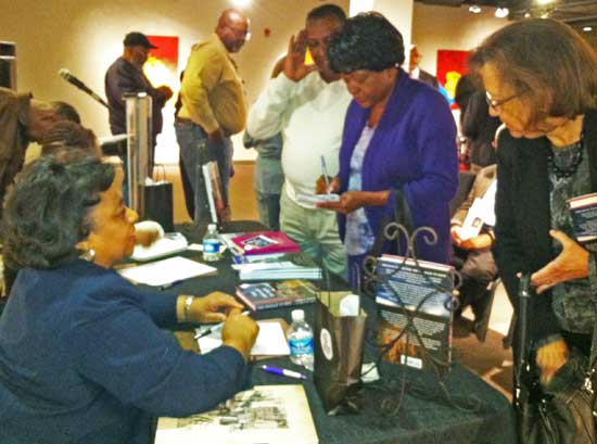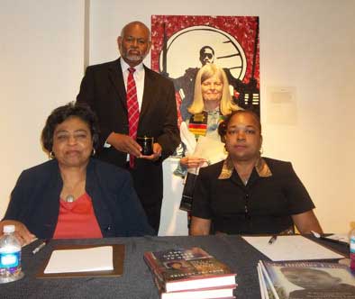 RDLN graduate and Board member Shirley Sherrod (l), author of The Courage to Hope, and RDLN Graduate Meredith McGee, author of James Meredith: Warrior and the America that Created Him, at Discussion and Book Signing at the International Civil Rights Center & Museum in Greensboro. Museum Director Bamidele Demerson at rear.